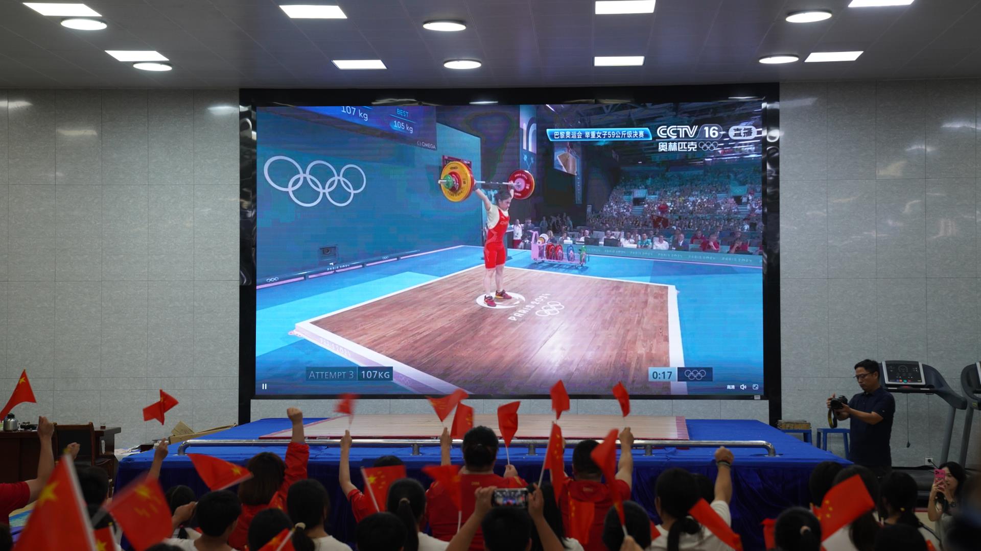 同一時間,位于長沙市雨花區(qū)的湖南省舉重運動管理中心,湖南中聯(lián)重科舉重隊的全體運動員、教練員和工作人員也一同觀看了比賽。繼8月8日凌晨見證侯志慧奪冠后,湖南中聯(lián)重科舉重隊又一次見證了“舉重湘軍”登頂奧運之巔的榮耀時刻。