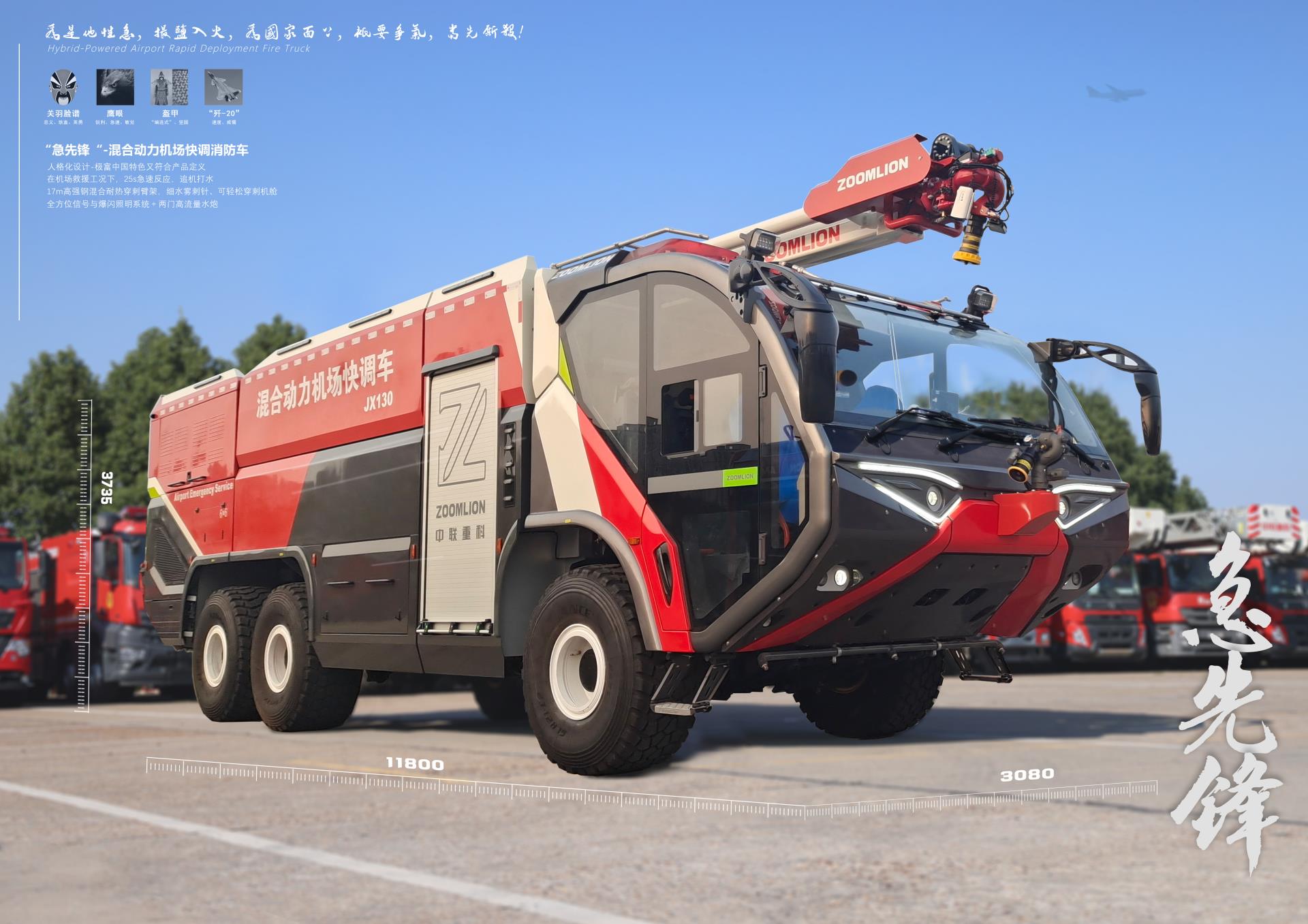 此次大賽中,中聯(lián)重科混合動力機場快調(diào)車獲得產(chǎn)品組唯一金獎,其基于我國應急救援“全災種、大應急”的背景開發(fā),是國內(nèi)首創(chuàng)混合動力的機場快調(diào)消防車,技術水平全球領先。該產(chǎn)品結合電動的瞬時爆發(fā)力和燃油的長時間持續(xù)滅火救援,瞬時加速時間大幅縮短,同時配備伸縮式+折疊式復合臂架,配置了一鍵出水、一鍵展(收)臂等智能化技術,功能全面、實戰(zhàn)性強;在非應急工況下可使用清潔能源,實現(xiàn)能量回收,綠色低碳、節(jié)能環(huán)保。中聯(lián)重科還將臉譜、傳統(tǒng)盔甲-編連式等傳統(tǒng)文化元素融入車型設計,通過設計賦予產(chǎn)品“忠義、耿直、英勇”的獨特個性,進一步提升產(chǎn)品價值。
