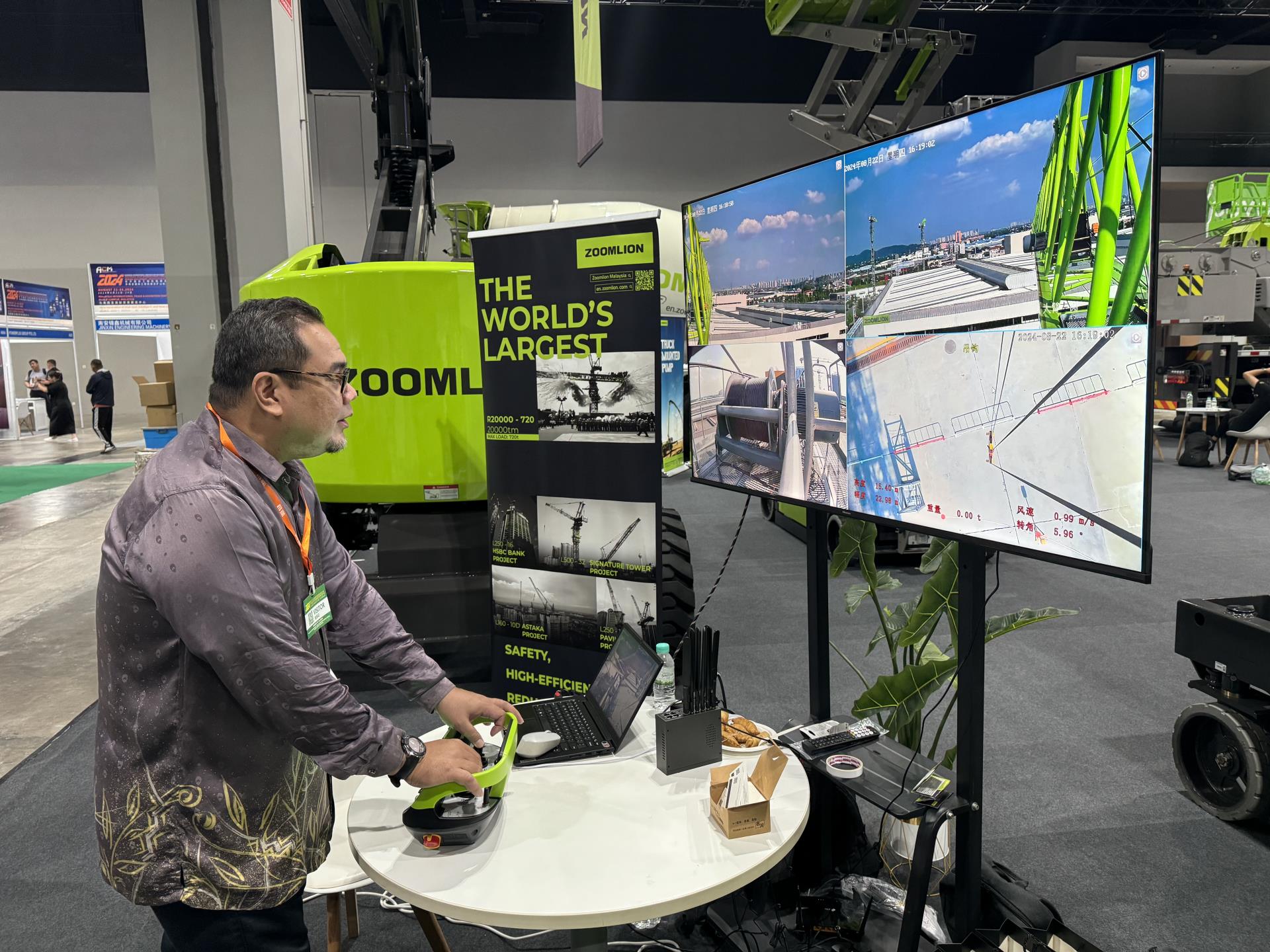 “上周已完成塔機底座、標準節(jié)安裝,這周將完成兩臺全地面起重機設備布展”,中聯(lián)重科現(xiàn)場工作人員介紹道。