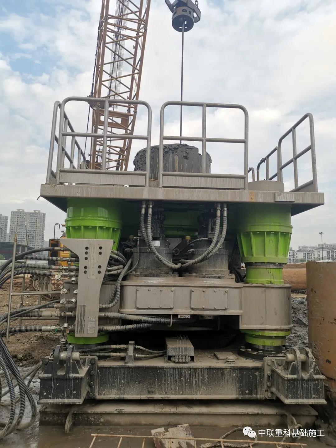 此次杭州項(xiàng)目工地臨近地鐵,周邊居民小區(qū)眾多,對(duì)施工設(shè)備的降噪標(biāo)準(zhǔn)有著非常高的要求,且該項(xiàng)目工況極為復(fù)雜——該樁長較長,且成樁過程中需穿越溶洞、巖層、流沙層等復(fù)雜地層進(jìn)行地下灌注樁施工,若采用傳統(tǒng)施工工藝則難度較大,安全風(fēng)險(xiǎn)較高。項(xiàng)目施工方綜合考慮,**終決定使用中聯(lián)重科全回轉(zhuǎn)鉆機(jī)進(jìn)行一次性全套管跟進(jìn)來實(shí)現(xiàn)成孔成樁。