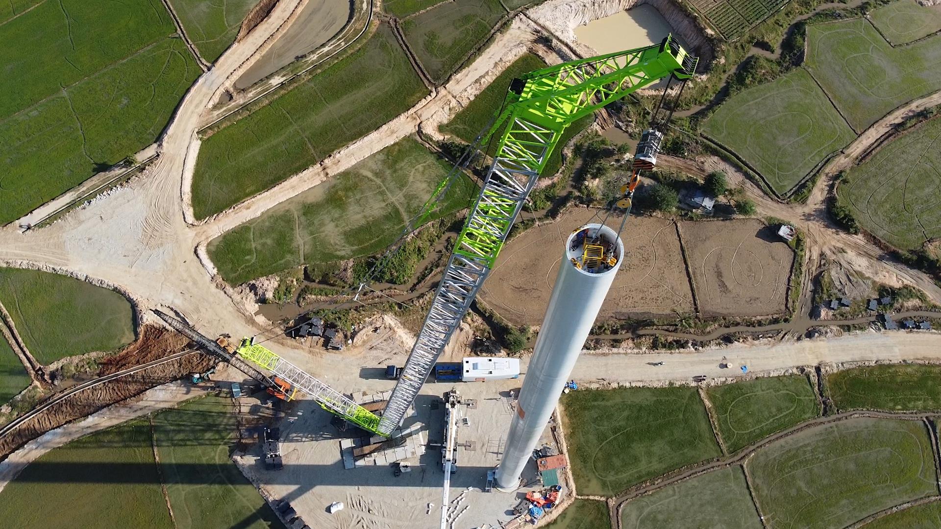 據(jù)了解,在該風(fēng)電項目中難度有三,其一是吊裝高度均集中在120米至150米之間,堪稱越南風(fēng)電吊裝高度之**;其二,所在地區(qū)有效風(fēng)力密度大,風(fēng)力出現(xiàn)天數(shù)全年占比高,所采用的風(fēng)電機(jī)組風(fēng)電單體容量比較大,豐富的風(fēng)力資源給吊裝帶來了極大的挑戰(zhàn),吊裝作業(yè)時需在持續(xù)的大風(fēng)中等待轉(zhuǎn)瞬即逝的“窗口期” ;其三,施工時間正值越南的雨季,多重因素的疊加對起重設(shè)備的性能帶來了極大地考驗。