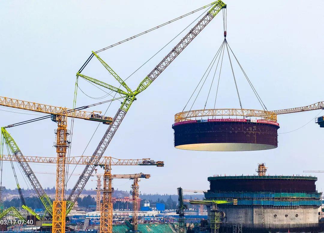 3月17日8時(shí)08分,海南昌江核電4號(hào)機(jī)組核島反應(yīng)堆廠房?jī)?nèi)殼鋼襯里模塊四吊裝就位,歷時(shí)3時(shí)10分,整體吊裝過(guò)程安全、可控,中聯(lián)重科ZCC32000履帶吊圓滿執(zhí)行任務(wù),助力施工節(jié)點(diǎn)較專項(xiàng)計(jì)劃提前25天完成,為實(shí)現(xiàn)年內(nèi)雙堆穹頂?shù)跹b奠定了堅(jiān)實(shí)基礎(chǔ)。