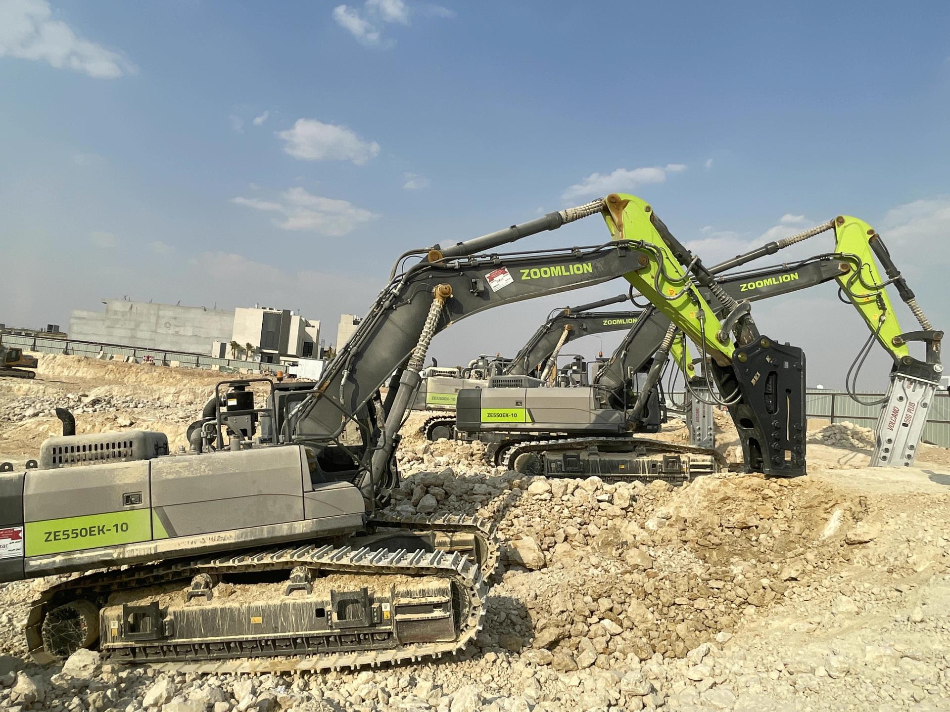以批量交付的55噸級產(chǎn)品——ZE550EK-10為例。這款產(chǎn)品的性能優(yōu)越、打擊穩(wěn)定、結(jié)構(gòu)可靠、防護(hù)細(xì)致,能夠廣泛適應(yīng)各種工況,在沙特新未來城的建設(shè)過程中表現(xiàn)十分亮眼。采購它的客戶不僅后續(xù)持續(xù)增大采購量,還積極向其他客戶介紹和推薦。