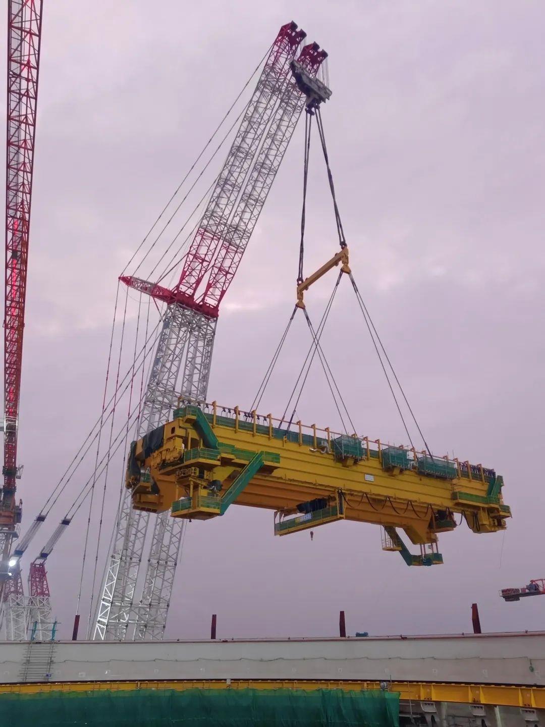 ▲中聯(lián)重科起重機正在進行昌江核電4號機組環(huán)吊橋架整體吊裝(圖片源于“華能昌江核電”公眾號)