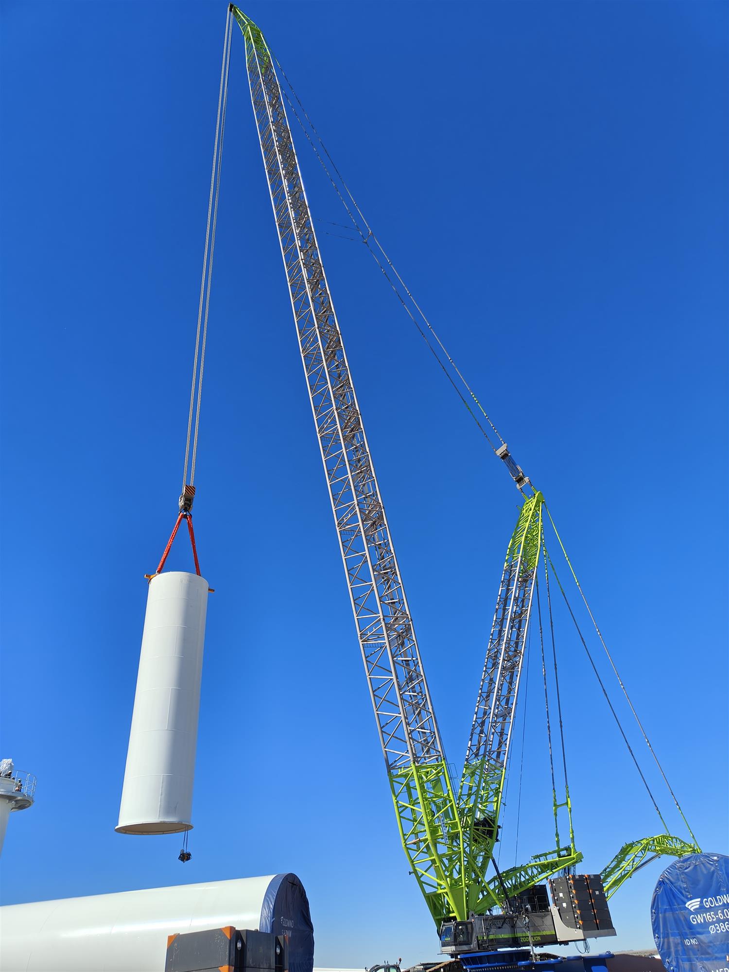 中聯(lián)重科1250噸級履帶起重機完成交付后,立即投入到當(dāng)?shù)刂攸c風(fēng)電項目建設(shè)中。當(dāng)?shù)貢r間上午10:05分,在項目工地上,隨著現(xiàn)場指揮員一聲令下,中聯(lián)重科履帶起重機將重達107噸的風(fēng)機塔筒平穩(wěn)吊起,然后將塔筒順利安裝在基座上,整個吊裝過程銜接緊密、井然有序,為后續(xù)風(fēng)機的安裝工作奠定了堅實基礎(chǔ)。中聯(lián)重科的高品質(zhì)智造裝備以出色的實戰(zhàn)表現(xiàn),贏得非洲客戶的高度評價。