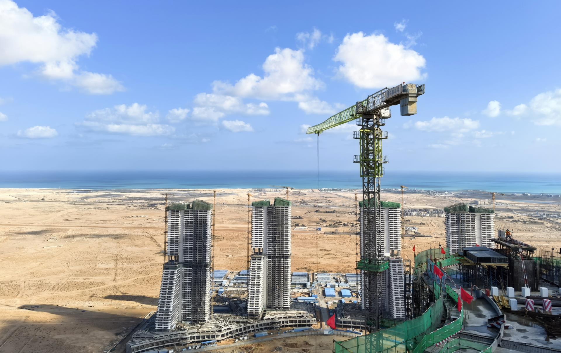 阿拉曼新城超高綜合體項(xiàng)目標(biāo)志塔全面竣工后,將宛如一顆璀璨的“藍(lán)寶石”,鑲嵌在地中海沿岸,成為埃及乃至非洲地區(qū)的新地標(biāo)。中聯(lián)重科設(shè)備深度參建了眾多非洲重要的基礎(chǔ)設(shè)施和民生工程,其中不少項(xiàng)目已成為中非合作典范。