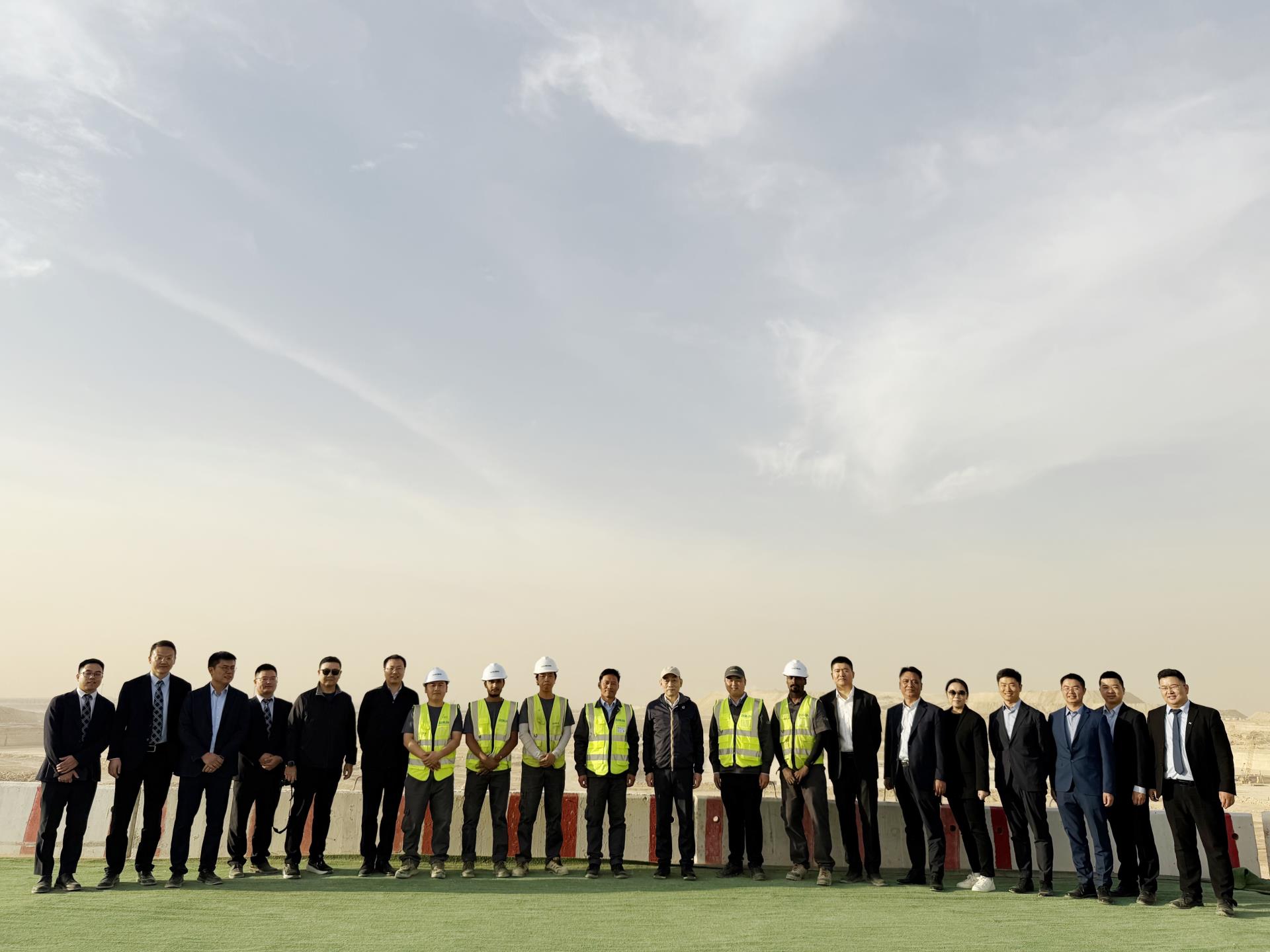 ▲中聯(lián)重科董事長(zhǎng)、CEO詹純新與相關(guān)高管在利雅得四方城項(xiàng)目現(xiàn)場(chǎng)