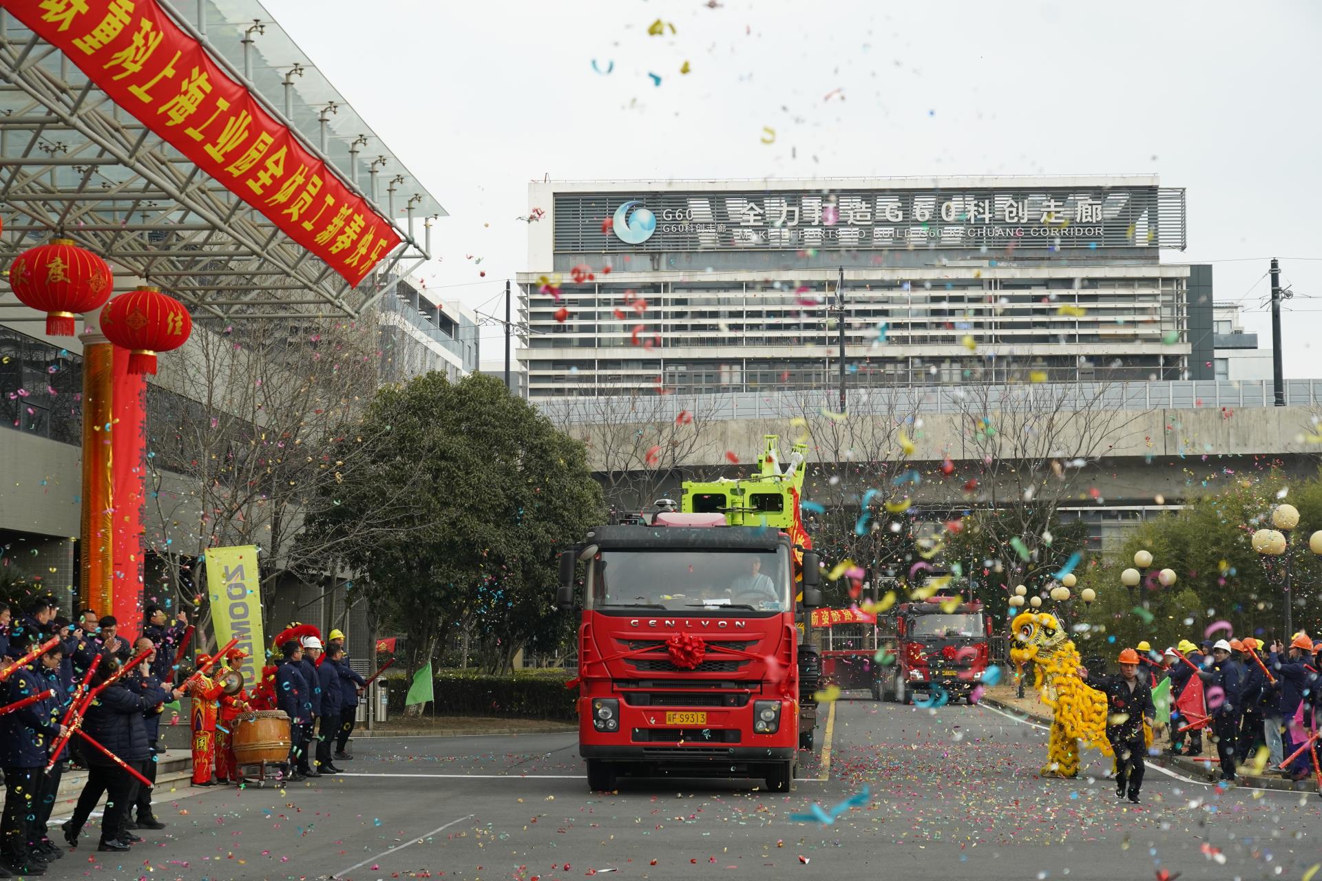 當(dāng)天,隨著一聲“發(fā)車!”號令,現(xiàn)場鞭炮齊鳴、爆竹聲聲,中聯(lián)智慧產(chǎn)業(yè)城四大園區(qū)同時發(fā)車,四支車隊浩浩蕩蕩,從園區(qū)出發(fā),經(jīng)過總部大樓接受檢閱,開啟闊步全球的新篇章。