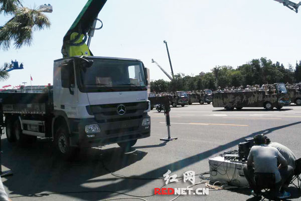 ??? 電視鏡頭里,觀眾看到的國(guó)家領(lǐng)導(dǎo)人坐車閱兵和閱兵方陣的側(cè)面鏡頭,就是依托全世界**長(zhǎng)的一條有線高空二維索道攝像系統(tǒng)拍攝,而中聯(lián)重科的兩臺(tái)QY95大型起重機(jī)負(fù)責(zé)為該二維有線索道定位支持。