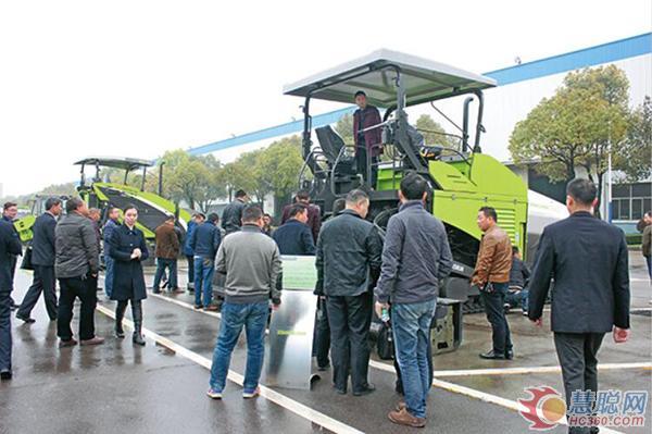 ▲客戶現(xiàn)場(chǎng)觀賞中聯(lián)重科路面機(jī)械4.0產(chǎn)品攤鋪機(jī)