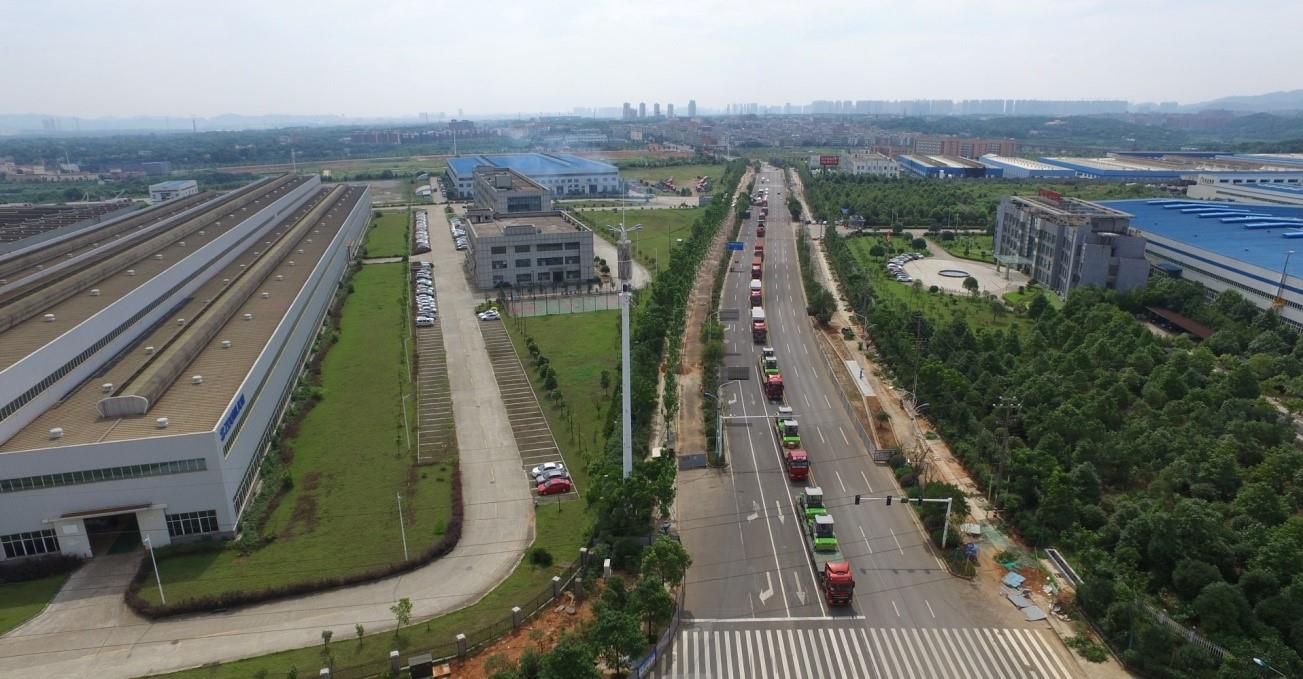 ▲中聯(lián)重科成套路面機械設(shè)備浩浩蕩蕩從望城工業(yè)園出發(fā)