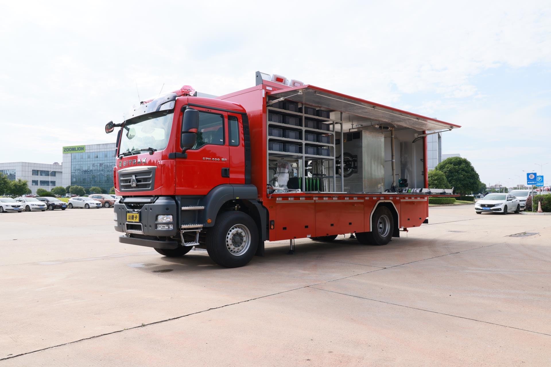 ? ? ??中聯(lián)牌QC20消防車是中聯(lián)重科與湖南省消防救援總隊(duì)聯(lián)合研制的全新被服洗滌消防車。整車性能優(yōu)越、操作方便、適應(yīng)性強(qiáng),具備發(fā)電、供水、污水收集、照明等自我保障能力,集洗脫、烘干等多功能于一體,適用于大規(guī)模、長時(shí)間、遠(yuǎn)距離、高頻次的應(yīng)急救援和演練的后勤保障。擁有近十項(xiàng)專利及多項(xiàng)創(chuàng)新技術(shù)。