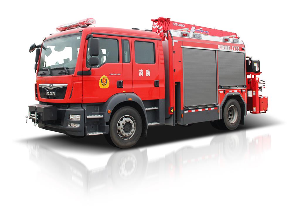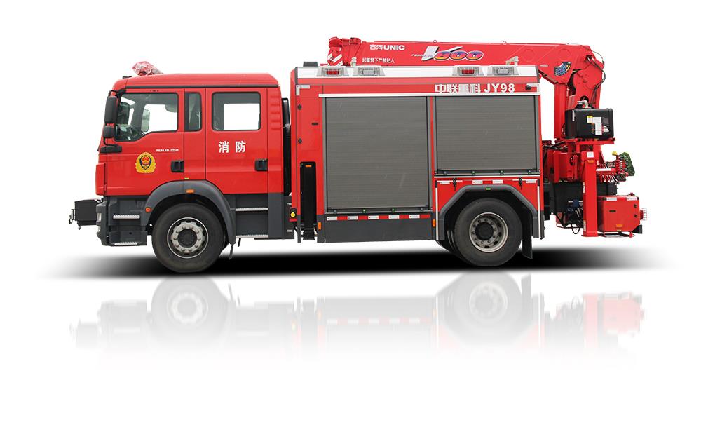 中聯(lián)重科JY98型搶險(xiǎn)救援消防車,結(jié)合國內(nèi)外消防車的先進(jìn)理念和消防實(shí)戰(zhàn)創(chuàng)新設(shè)計(jì)而成,整車結(jié)構(gòu)緊湊,越障能力強(qiáng),可裝備絞盤、升降照明系統(tǒng)、起吊機(jī)、液壓破拆工具組、偵檢器具、救生器具等超過98件搶險(xiǎn)救援器材,是集照明、供電、牽引、起吊、破拆、偵查、救援等功能于一體的多功能消防車,具備強(qiáng)大的搶險(xiǎn)功能和綜合救援能力,是火災(zāi)、地震、抗洪、車禍等各類災(zāi)害搶險(xiǎn)救援的主力車型。