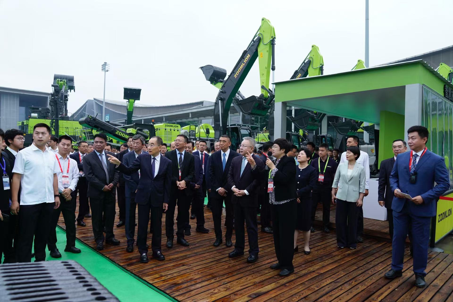 Δ中聯重科黨委書記、董事長、CEO詹純新陪同湖南省委書記沈曉明參觀中聯重科展區