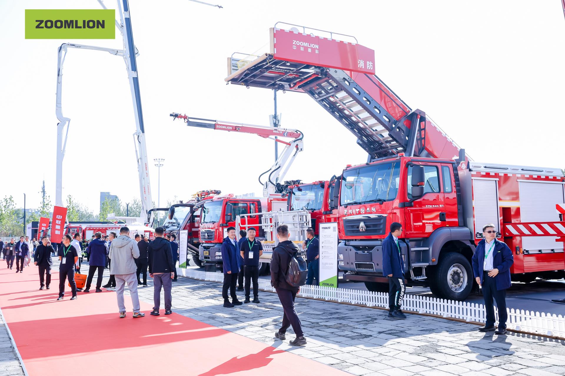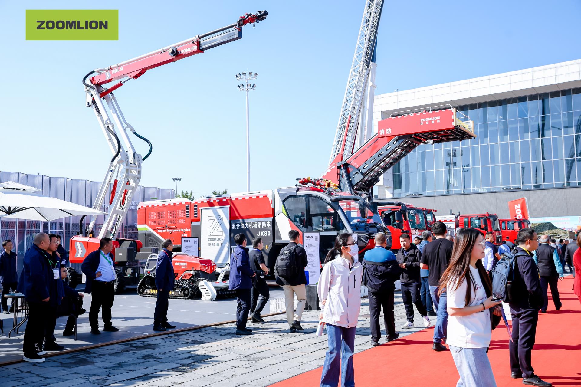 走進中聯(lián)重科展區(qū),數(shù)臺“鋼鐵巨人”巍然屹立,引來眾多觀眾駐足。此次中國國際消防設備技術交流展覽會,中聯(lián)重科共攜帶20余款產(chǎn)品亮相,其中14款產(chǎn)品為全球首發(fā),包括全球**高70米大跨距舉高噴射消防車、37米大跨距舉高噴射消防車、JX80混合動力動機場消防車、DJJY登機救援消防車、PM30高阻燃凝固滅火劑消防車、ZJ300核生化偵檢消防車、BP620泵浦消防車、電動排澇泵與浮艇泵等裝備,以及防爆、補給、運輸、巡檢及無人機等全系列無人裝備。