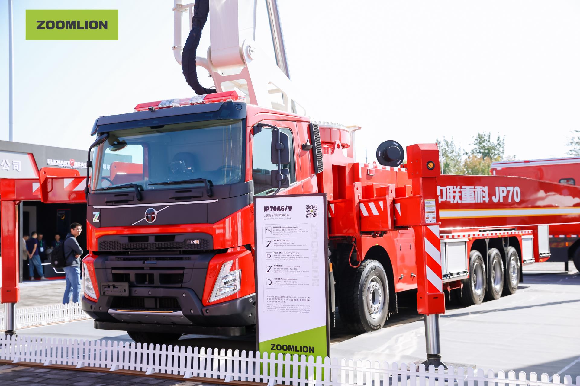 ▲中聯(lián)重科全球**高70米大跨距舉高噴射消防車