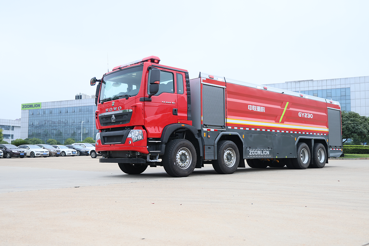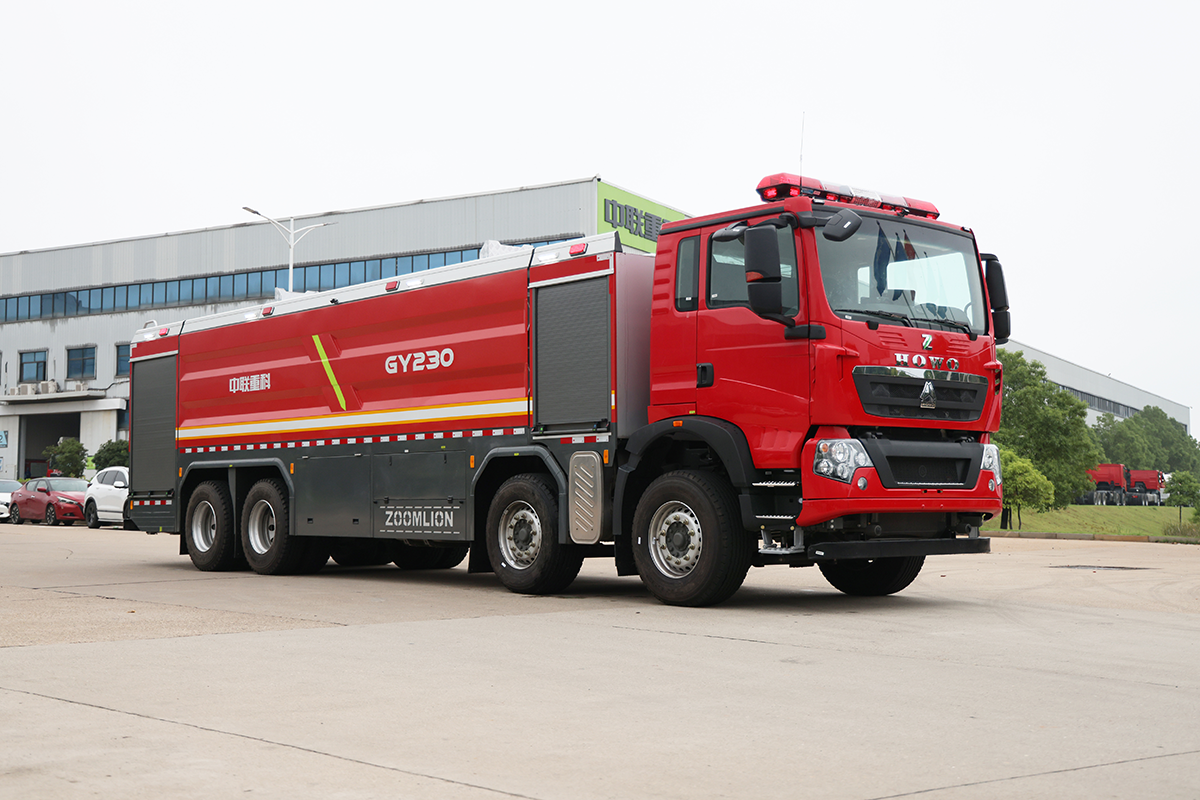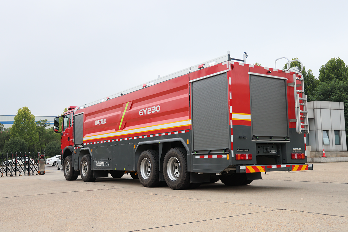 中聯(lián)牌GY230-6型供液消防車,整車機(jī)動靈活,整車載液量大,裝備供液(向其他滅火裝備輸送泡沫液)與吸液(迅速補(bǔ)給自帶供液罐)兩套獨(dú)立的螺旋轉(zhuǎn)子泵供吸系統(tǒng),可向滅火裝配遠(yuǎn)距離不間斷輸送泡沫原液,是城市應(yīng)急救援消防隊(duì)與企業(yè)專職消防單位必備首選滅火后勤保障利器。