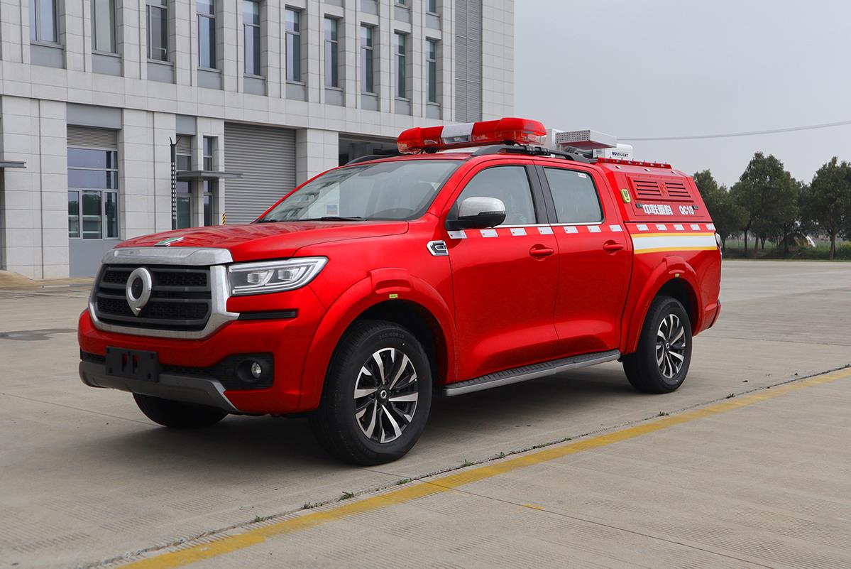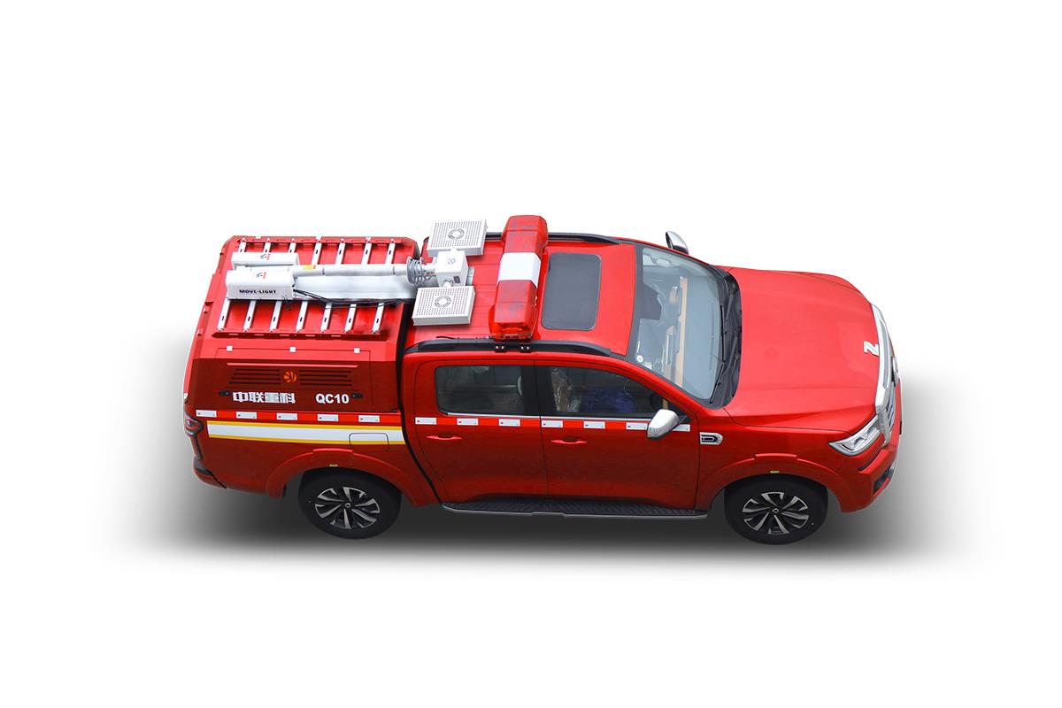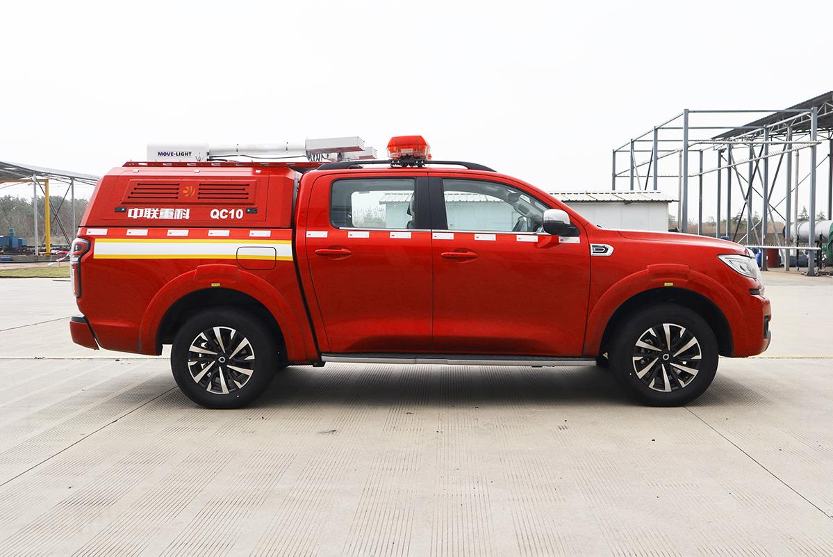 QC10A6型“平戰接合型”前突皮卡車,在救援隊伍行進時,起突前器材運輸作用,用于搭載救援人員和消防器材快速到達事故現場。