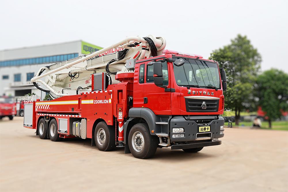 中聯重科JP52型大跨距舉高噴射消防車,結合國內外消防車的先進理念和消防實戰創新設計而成,具備強大的滅火功能,整車性能優越,快速高效,操作性、安全性及智能化控制水平處于國際先進水平,是石油、石化、城市、庫房等場所滅火的作戰利器。