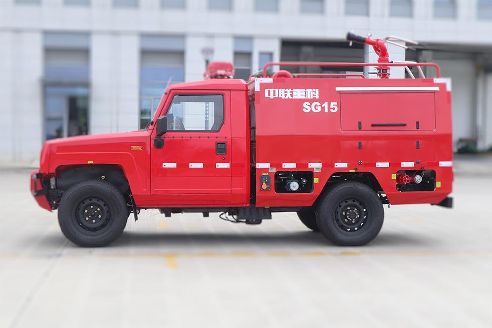中聯牌SG15-6型四驅皮卡滅火消防車,配置專業的越野全驅皮卡二類底盤,極大地提升產品越野性能,是專門針對森林領域等復雜道路、空間狹窄滅火救援場景研制的新型特種裝備,能夠**一時間抵達火災現場,提高救援效率。