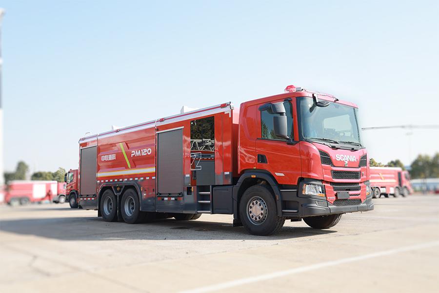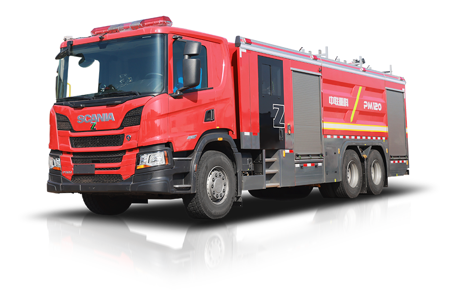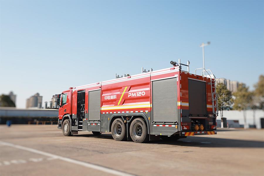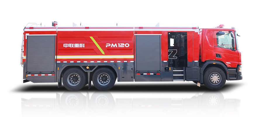 中聯牌PM120型泡沫/水罐消防車,整車機動靈活,裝備常規型B類泡沫系統,適合撲救工業與民用建筑A類火災,亦可撲救石化,煤化,油庫等B類火災;全鋁合金車身,自重輕,強度高,防腐蝕性能好,可隨車攜帶多種搶險救援器材,是城市應急救援消防隊與企業專職消防單位滅火救援的重要裝備。