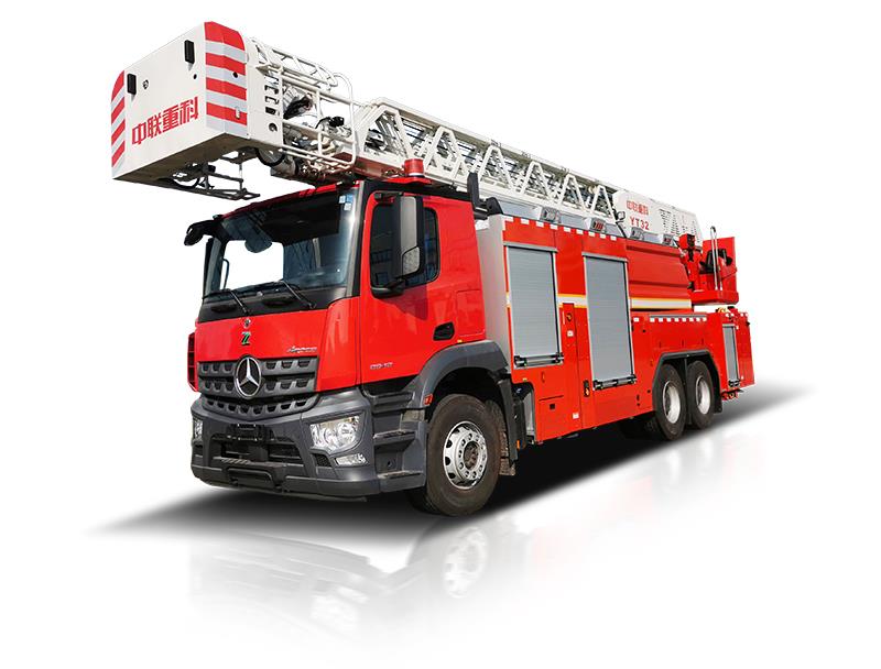 ? ? ? 該車采用德國原裝進口BENZ底盤,加裝美國希爾公司RSD100消防泵、美國AKRON公司3482消防炮、液壓系統、梯架系統、氣路系統、電器系統等部件改裝而成。