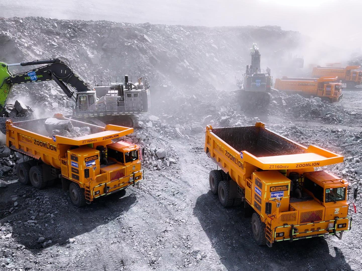 黑山煤礦數百臺載重100噸混動寬體車ZT160HEV(定制涂裝)與ZE1350G礦挖組成百噸級礦山黃金搭檔,憑借卓越的性能、便捷的維護和可靠的使用體驗,在實際作業中展現出強大優勢,獲得客戶的高度評價,成為行業綠色高效新標桿。