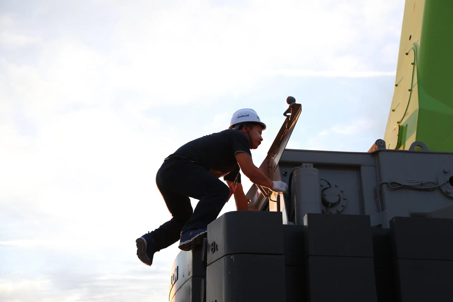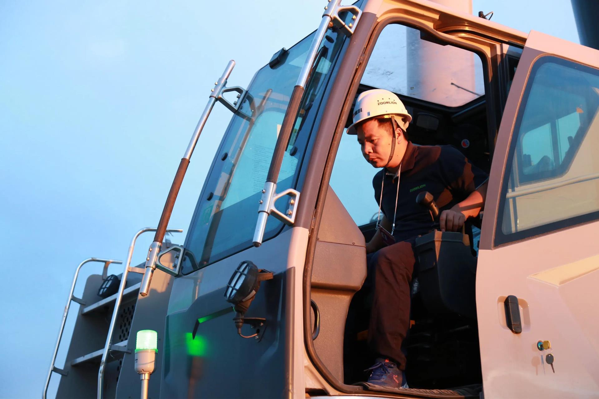 2020年,山東的客戶購買了ZAT18000H起重機用于山西某風電項目吊裝。當時,該客戶是中聯重科的新客戶,**一次購買公司產品就選擇了1800噸的大塊頭;ZAT18000H起重機也是中聯重科當年打造的一款針對風電吊裝的新品;同時,司機之前也沒有操作過中聯重科大噸位起重機的經驗,可謂是“三新”挑戰。在近三個月的跟車服務過程中,邱志良和公司另一名服務工程師忙前忙后,調試設備、培訓機手、協助轉場等等,不僅沒出現問題,還實現了高效安裝,某一個月就安裝了7臺風機。“當時,晚上也是零下三四十度,但是整個過程卻很是愉快,學到了很多新的東西,也將過程中發現的問題反饋給技術,用于改進產品。”